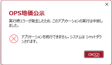 事例比較法画面で事例を採用しようとすると、実行時エラーが表示される