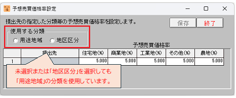 【障害】予想売買価格率設定画面で「使用する分類」の「地区区分」を選択しても「用途地域」の分類で計算される