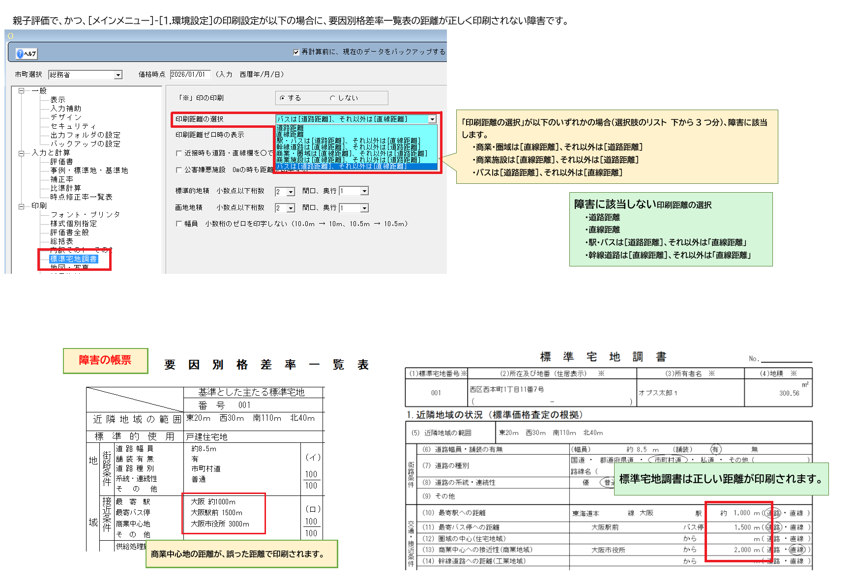 【障害対応済み】要因別格差率一覧表に印刷される距離が、[環境設定]画面で設定したとおりに印刷されない場合がある