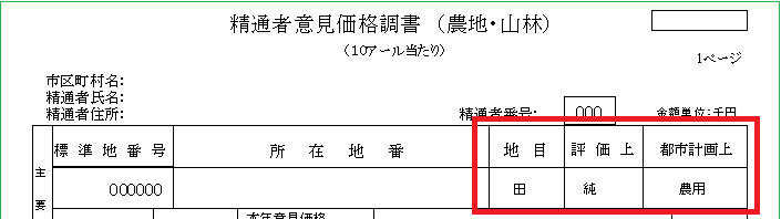 - 農地・山林:「地目」、「評価上」、「都市計画上」